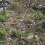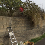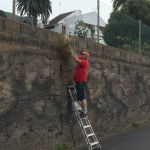A las 10:00 de la mañana Patricia, Eva y Manuel se dieron cita en el camino y empezaron organizando la tarea. Eva y Patricia subirían desde un punto hacia el cantero de Aloe, mientras Manuel, escalera en mano, se dirigía al muro del inicio del camino para despejar esas grandes matas.