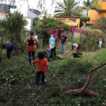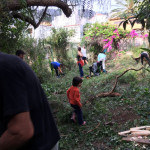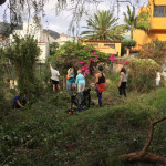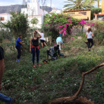 El pasado jueves 5 de octubre de 2017, nos reunimos con estas familias en La Levadura consiguiendo reunir a 10 personas que reconocieron el terreno y antes de decidir los espacios que cada una iban a cultivar se hicieron trabajos consistentes en cortar ramas del falso pimentonero y retirada de los troncos de la buganvilia.